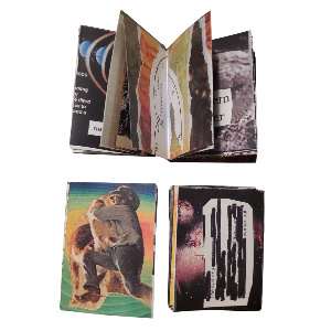 A mini collage zine about space, solar & earth systems. By kynylok, 2025.